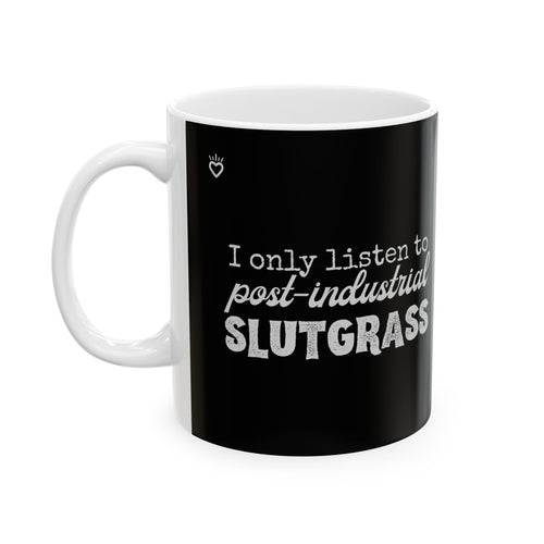 "I Only Listen to Post-Industrial Slutgrass" Mug // Durable Ceramic Mug - 11 oz, 15 oz